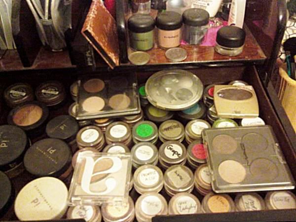 Jan. 12th, 2009 08:14 amMy room was a mess this weekend. I decided to get around to tackling it Sunday night around 6 PM because I am such a go-getter. I decided to start with my vanity because I had washed all my makeup brushes earlier. There are two missing and I just know I will find them under some furniture one day covered in cat spit and dust bunnies.